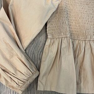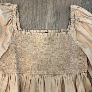 New without tags. Size large. J.Crew. Square neck with ruching. 100% Cotton. Caramel colored.
