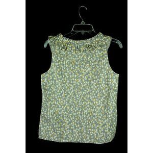 J. Crew TPopover Blouse Sleeveless Pattern Ruffle 100% Cotton