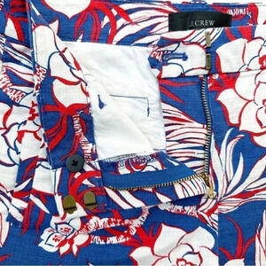 Beautiful NWOT women’s shorts from J. Crew. Vibrant tropical/floral red, white and blue print; pockets at the hips and back; hook and bar closure; cotton with a hint of stretch.