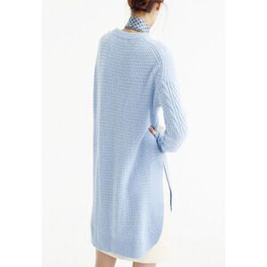 J.Crew Tunic Cable Knit Sweater Womens XS Crew Neck Wool Blend Blue.