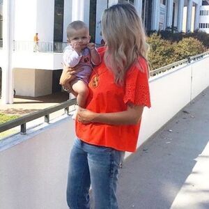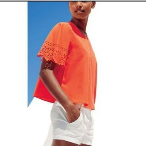 Gently used in great condition. Size small, orange color. Bell sleeves. 35% cotton, 65% polyester Machine wash Fm11sc