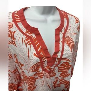 J.Crew Tunic Tropical Floral Print 3/4 Sleeves Cotton Size Medium White Orange