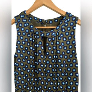 J.Crew Tuscan Keyhole Sheath Dress Sz 2 Olive Green Blue Geometric - Lined - Back Zipper