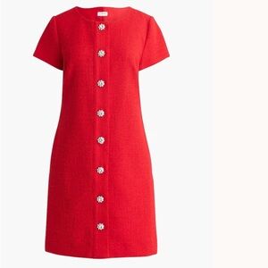 J.Crew Factory Tweed Dress With Jeweled Buttons In Red new tag no holes no rips for non-smoking home beautiful red dress with bling bling button
