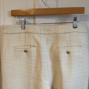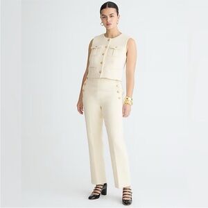 This elevated silhouette comes with functional gold button details down the sides and a straight, slightly tapered leg. Crafted from our warm, textured tweed fabric, it pairs perfectly with the matching lady jacket or vest.
