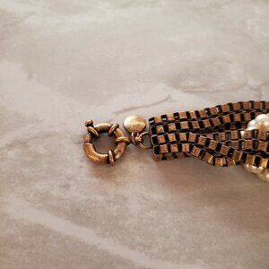 💕 J.Crew Twisted Knot Pearl Box Chain Antiqued Distressed Vintage Bracelet 💕