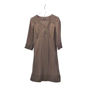 J.Crew V Neck Pull over Tunic Dress Chocolate Brown M boho contrast top stitch