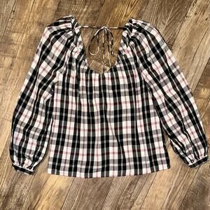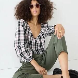 JCrew V-Neck Friday Plaid Long Sleeve Cotton Blend Top Size Medium