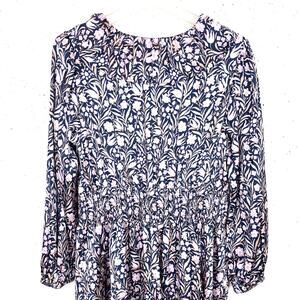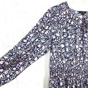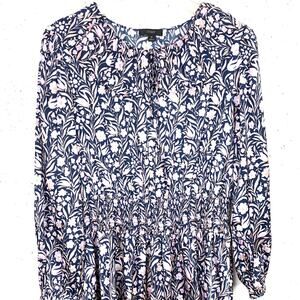 J.Crew V-Neck Mini Dress Floral Fields Navy Smocked Waist Ruffle Neck Medium
