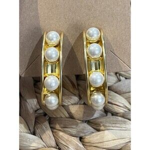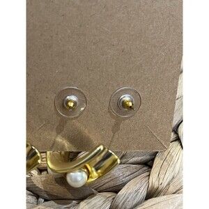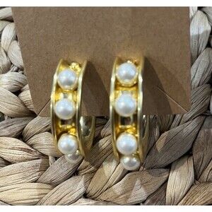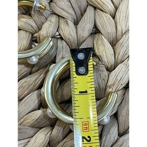 J.Crew VTG Oversized Pearl Hoop Earrings Gold Tone Pierced Statement Y2K Regency