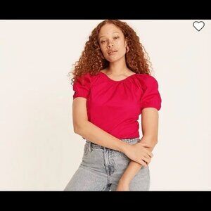 J.Crew V-back Puff-Sleeve Stretch Cotton Poplin Top | Black| Size 2 | NWOT
