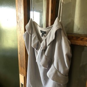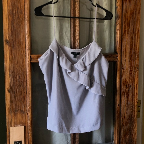 Brand new JCrew velvet ruffle tank with tags. Beautiful light grey/blue color.