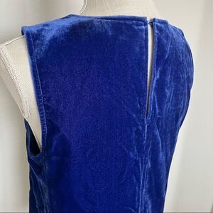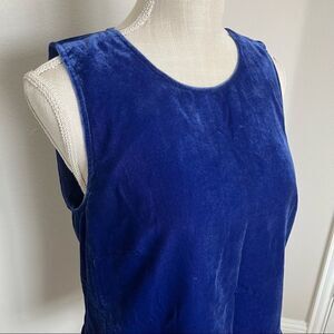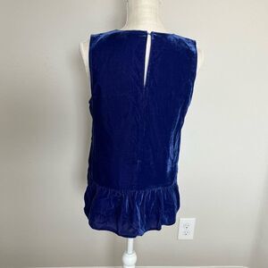 This velvety top is EVERYTHING! It's sleeveless which means it can be worn year round and can easily be dressed up or down. Size 4. Flounce hem, keyhole back with button closure.