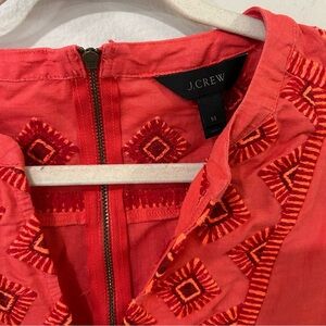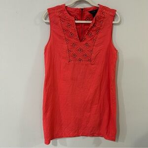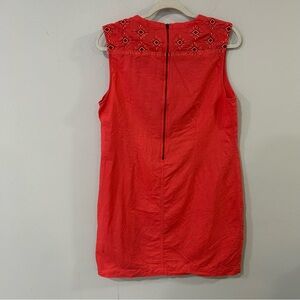 J.Crew Vibrant Coral Pink Red Embroidered Sleeveless Mini Dress Women’s Medium