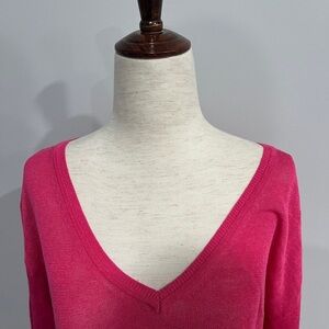 JCrew Vibrant Pink V-Neck Sheer Thin Long Sleeve Sweater XS