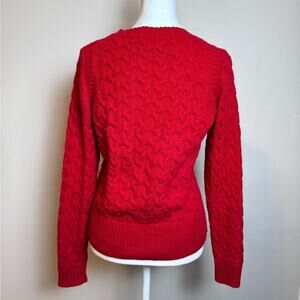 Cozy and classic, this J.Crew vintage cable knit sweater is crafted from soft wool in a rich red hue. Features timeless cable detailing, a crew neckline, and a slightly relaxed fit—perfect for layering in cooler weather.