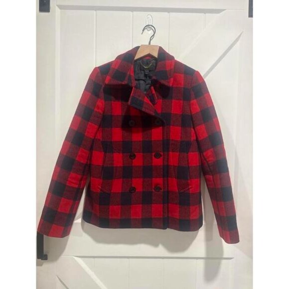 J.Crew Vintage Y2K Women's Buffalo Plaid Wool Peacoat in Red and Navy Blue