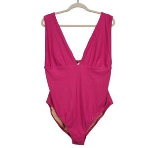 J Crew V-neck One-Piece Fushia Pink Swimming Suit Plus Sz 18 Plunging V-Neck