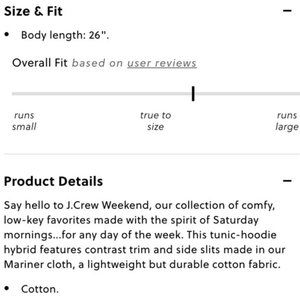 Say hello to J.Crew Weekend, our collection of comfy, low-key favorites made with the spirit of Saturday mornings...for any day of the week. This tunic-hoodie hybrid features contrast trim and side slits made in our Mariner cloth, a lightweight but durable cotton fabric.