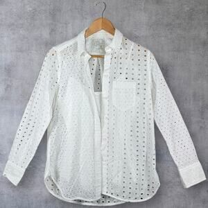 J.Crew White Eyelet Button Down Shirt 100% Cotton Classic Fit Capsule Casual | 2