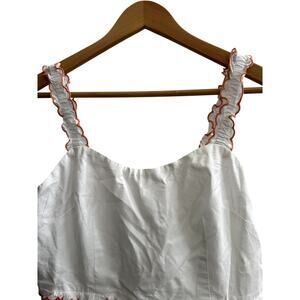 J.Crew Factory White Eyelet Scalloped Trim Tiered Midi Dress Size 6 Cotton Lined Summer Wedding Guest Resort Casual