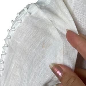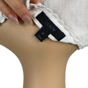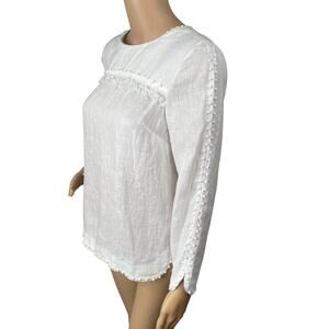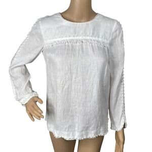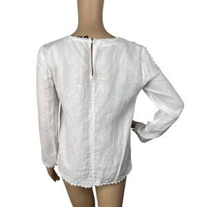 J.Crew White Linen Pom Pom Tassel Long Sleeve Top SZ 0