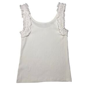 J.Crew White Ruched Strap Tank Top NWT Women’s Small Ruffle Trim