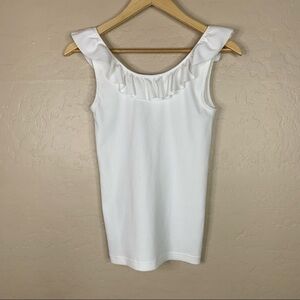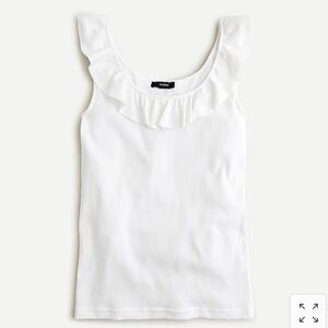 J.Crew White Ruffle-neck Ribbed Tank-top