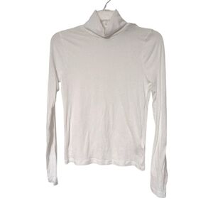 This J. Crew top features a sleek, fitted design with a classic turtleneck and long sleeves, crafted in a soft, stretchy fabric. Its minimalist style and clean white color make it a versatile addition to any wardrobe.