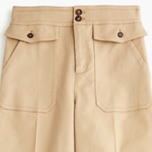 High waisted twill trousers by J Crew. Dark tan color. front and back pockets with decorative button flap in front. Heavier weight. Great condition!