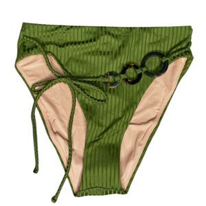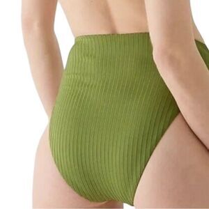 J.Crew Wide Rib High Rise Bikini Bottom Women's Canteen Green NWT M