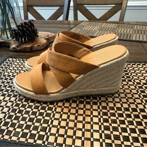 : J.Crew Wide-Strap Espadrille Mule Wedges Pale Clay Beige Size 7.5