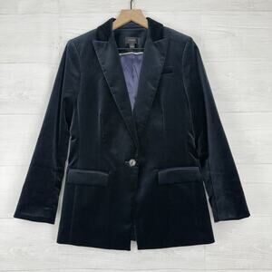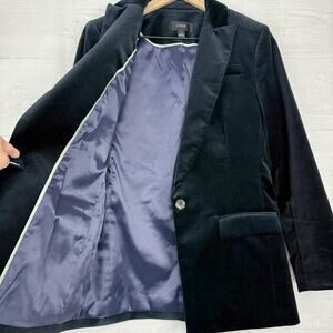 J.Crew Willa Blazer Women's 2 Black Stretch Velvet One Button Preppy Academia