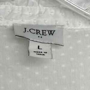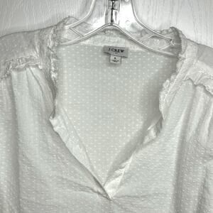 J.Crew Wms L White Long Sleeve Swiss Dot Popover Top Academia Ruffled Feminine