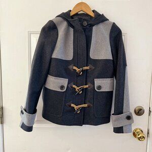 J.Crew Woman's Black/Grey Wool Outdoor Duffle Toggle Short Coat Sz 0