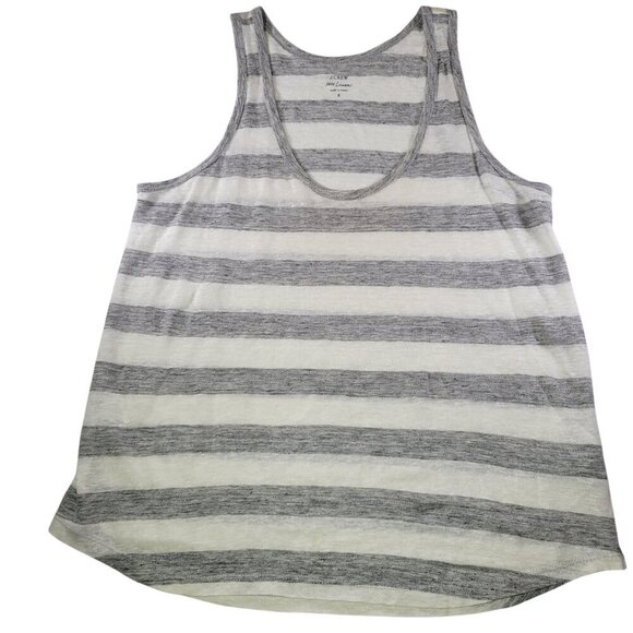J.Crew Women Gray & White Striped Casual Lightweight 100% Linen Tank Top Size S