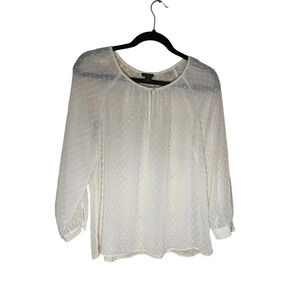 J.Crew Women Ivory Sheer Lightweight Long Sleeve Blouse with Pom Poms Sz Small