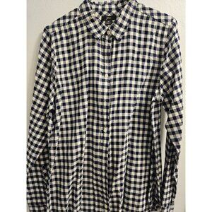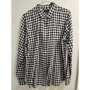 J.Crew Women Navy White Plaid Button Down Casual Business Work Shirt Size 10 EUC