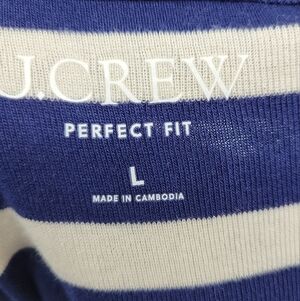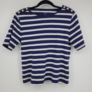 J.Crew Women Perfect-fit elbow-sleeve T-shirt in stripe with gold buttons Size L