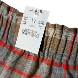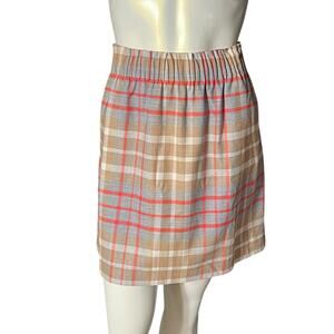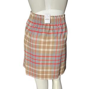 J.Crew Women Plaid Mini Skirt Size 12 NWT Wool Blend Elastic Waist Beige Orange