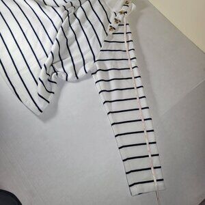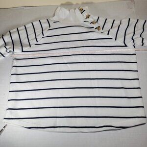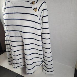 J.Crew Women White Navy Stripe Button Neck Long Sleeve Cotton Blend Tunic Size L