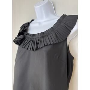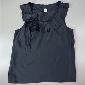 J.Crew Womens 100% Silk Top 6 Black Ruffle Bow Sleeveless Old Money Classic Prep