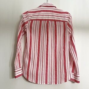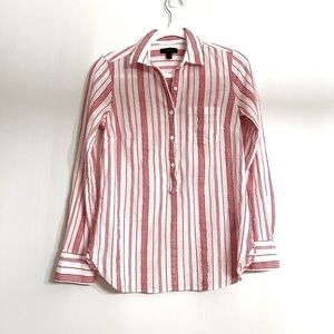 J.Crew Women’s 1/2 Button Front Shirt Size 0 Red White Stripe Long Sleeves