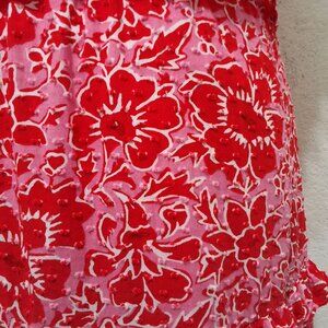 J.Crew Womens 2 Azalea Belvedere Ruffle Midi Dress Red Pink Floral Valentine's