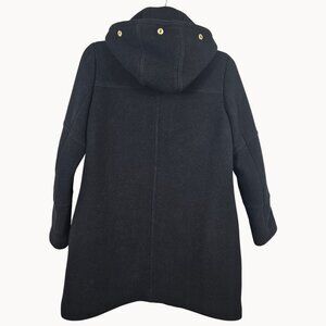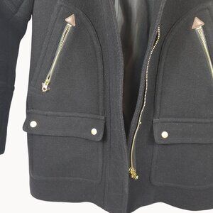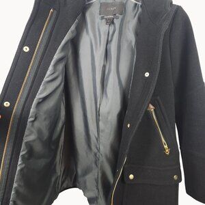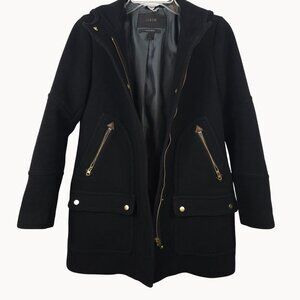 J.Crew Womens 2 Italian Wool Hooded Tailored Coat Black Lined Gold Accents Warm