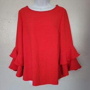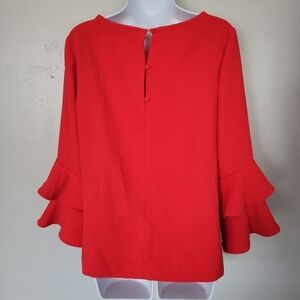 J.Crew Women's 6T 6 Tall Red Quarter Statement Sleeve Blouse Bell Ruffle Top