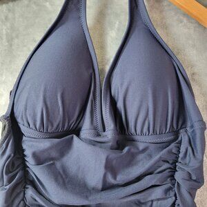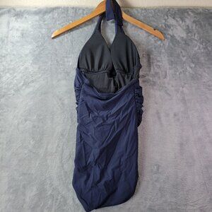 J.Crew Womens 8 Navy Halter One Piece Swimsuit Ruched Front Style B6757 Made in