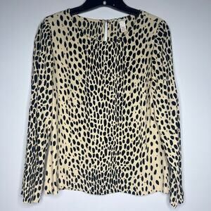 J.Crew Women's Animal Print Blouse Sz 2 Long Sleeve Leopard Old Money Neutral