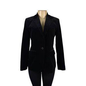 J.Crew Womens Black Cotton Blazer Single-Button Velvet Style Size 4
