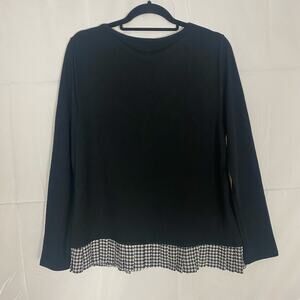 J.Crew Women's Black Long Sleeve Top with Houndstooth Hem – Size L